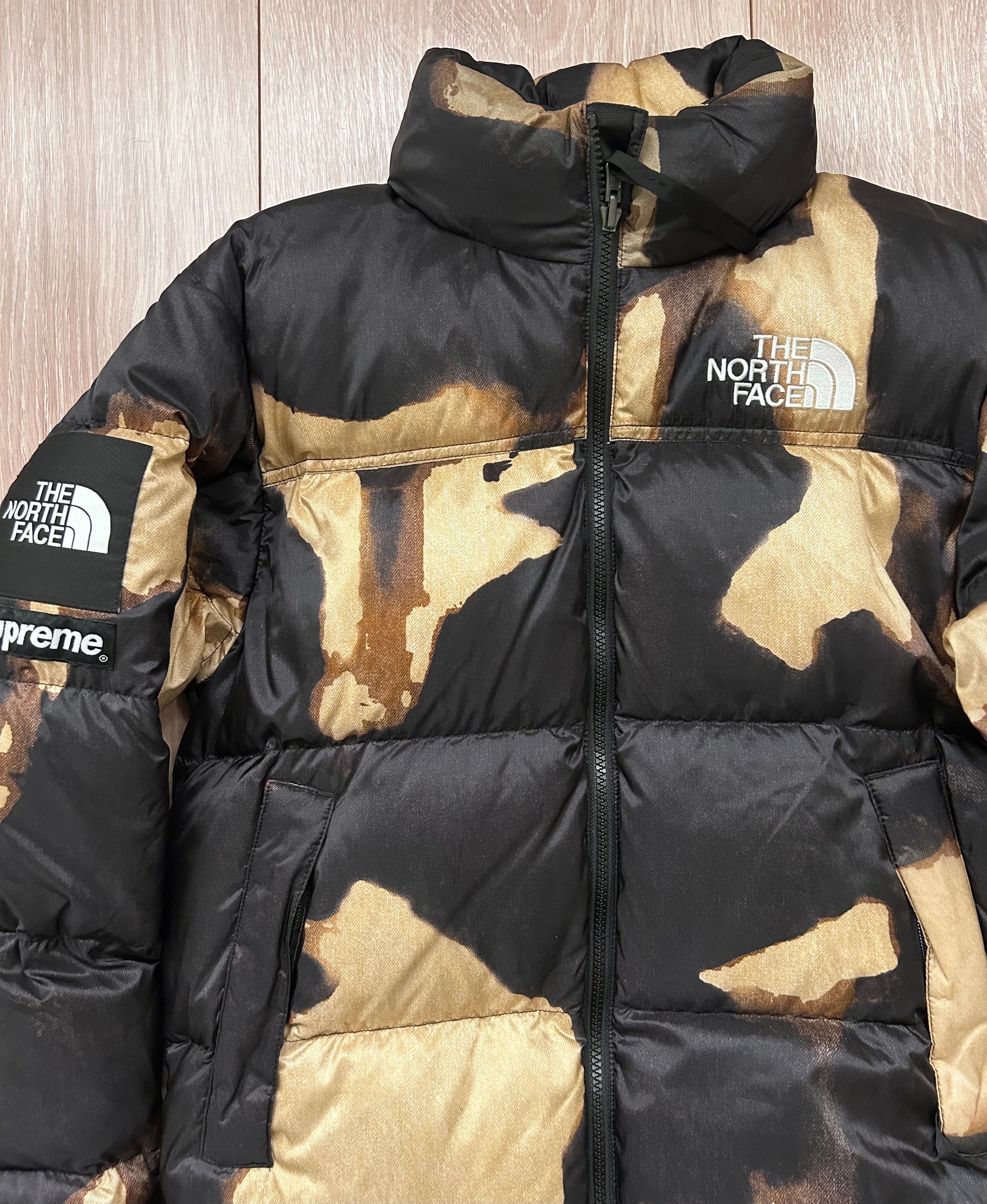 Supreme x The North Face Bleached Denim Print Nuptse Jacket "Black"
