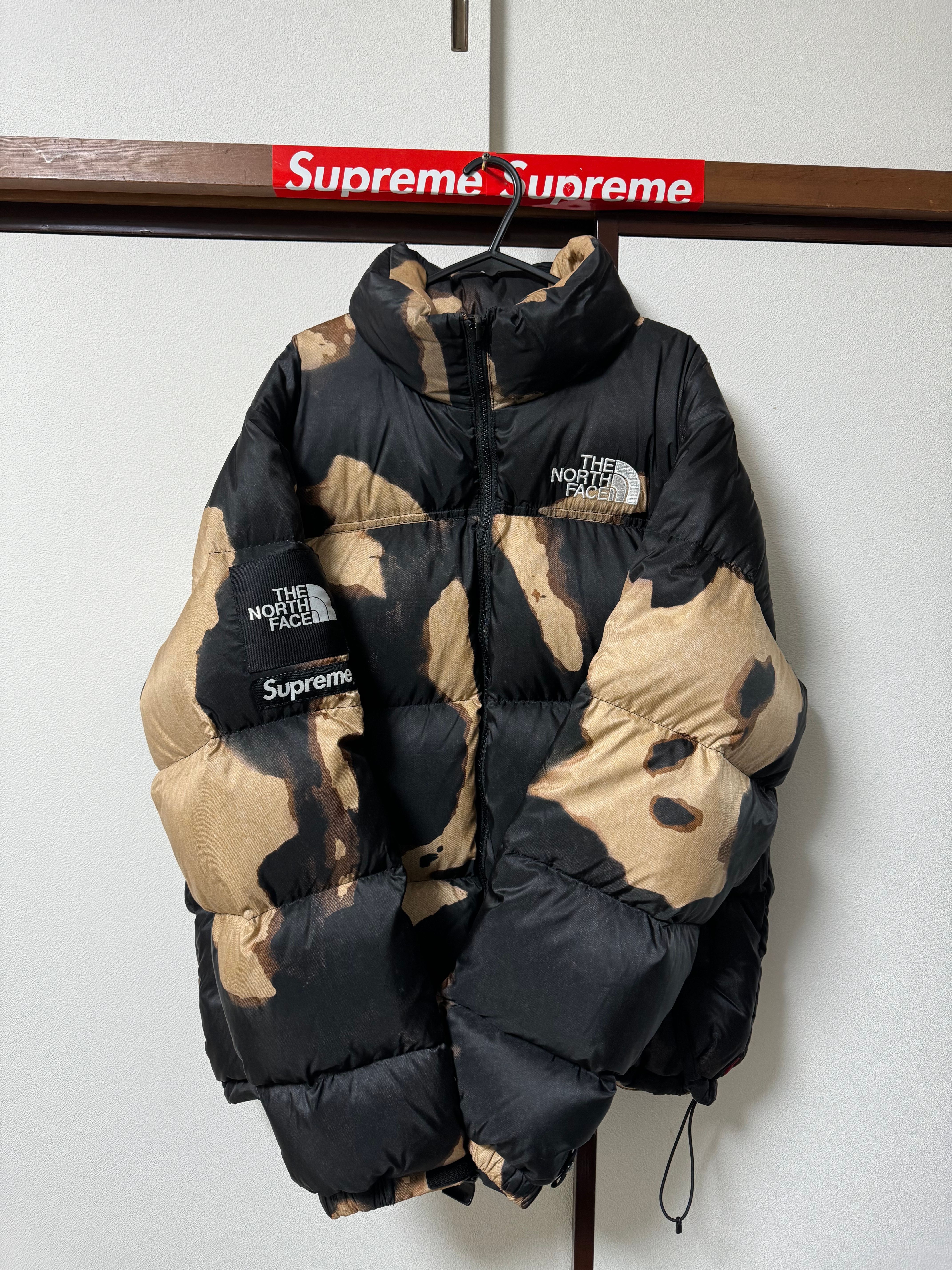 Supreme x The North Face Bleached Denim Print Nuptse Jacket "Black"