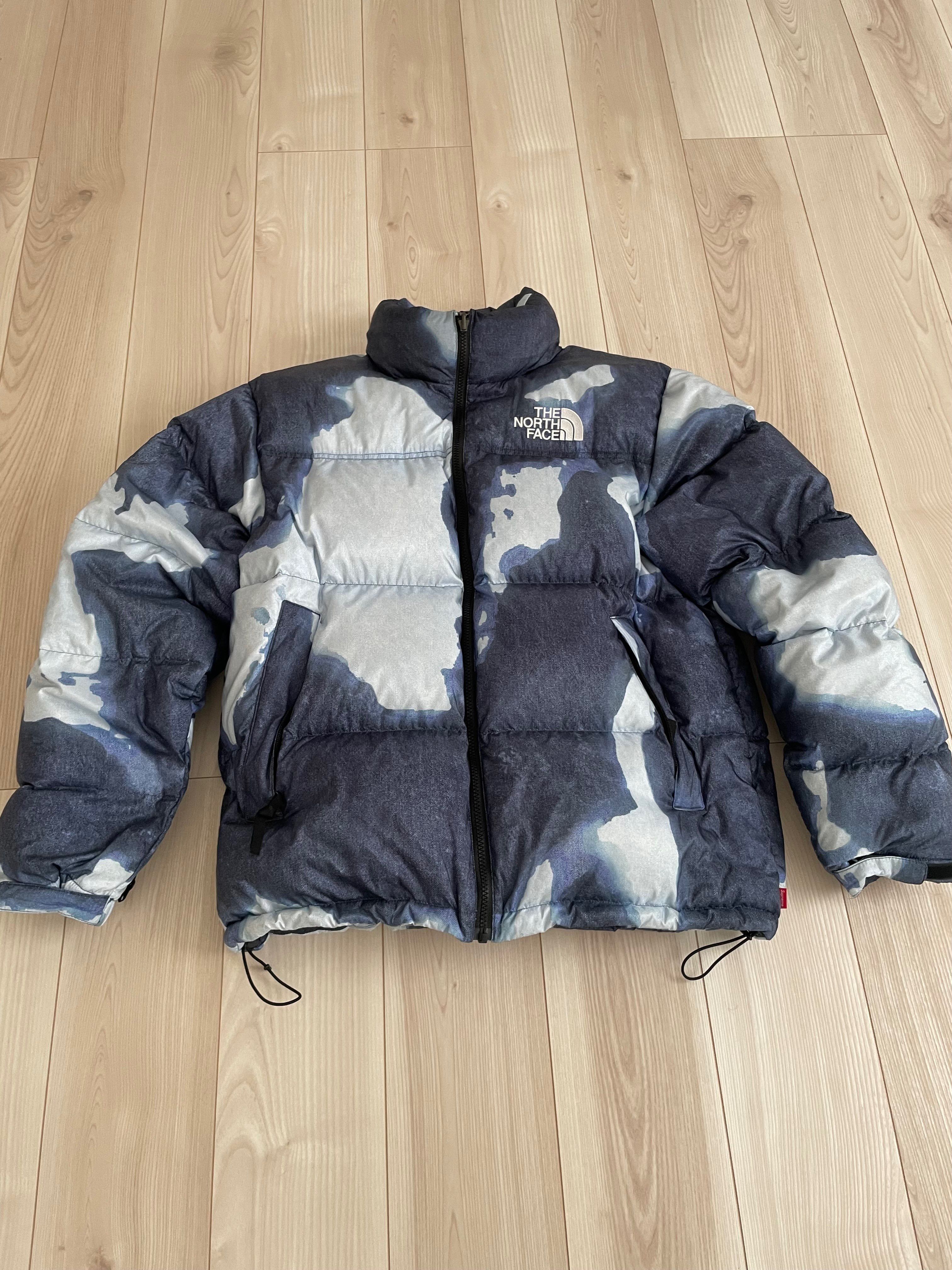Supreme x The North Face Bleached Denim Print Nuptse Jacket "Indigo"