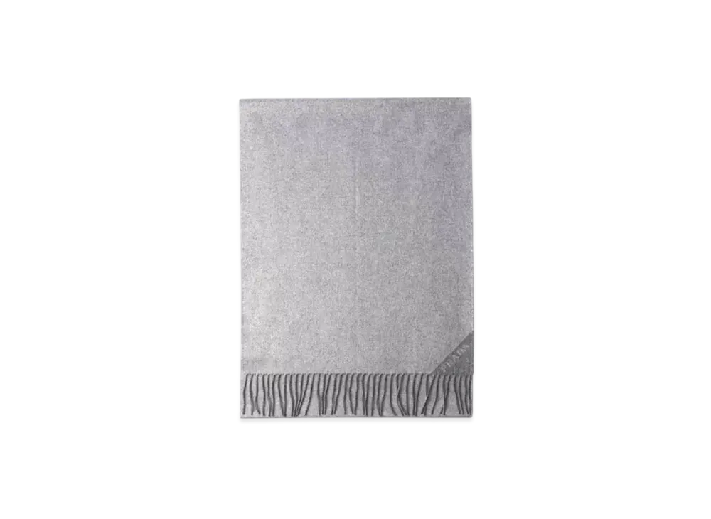PRADA Jacquard Evening Silk, Cashmere and Lurex Scarf "Silver/Off White"