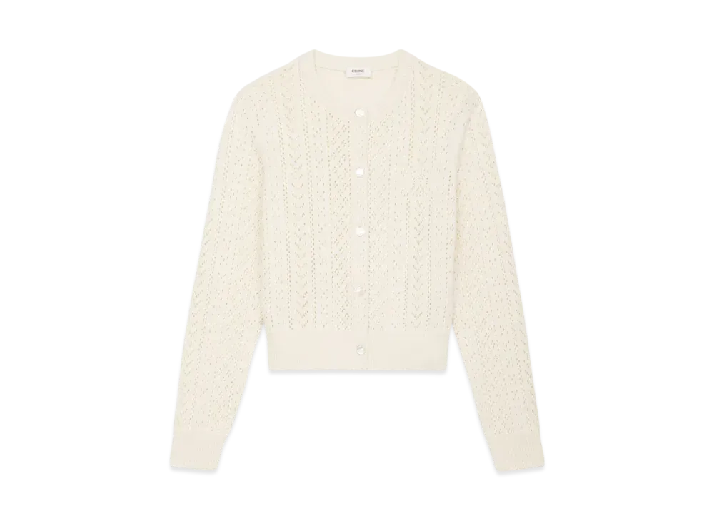 CELINE Women's Cardigan in Cotton Pointelle "Off White"