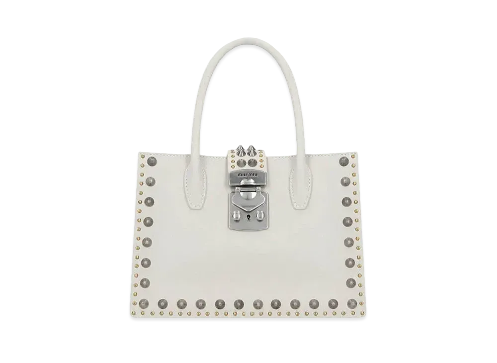 Madras Leather Handbag With MIU MIU Studs "Off White"