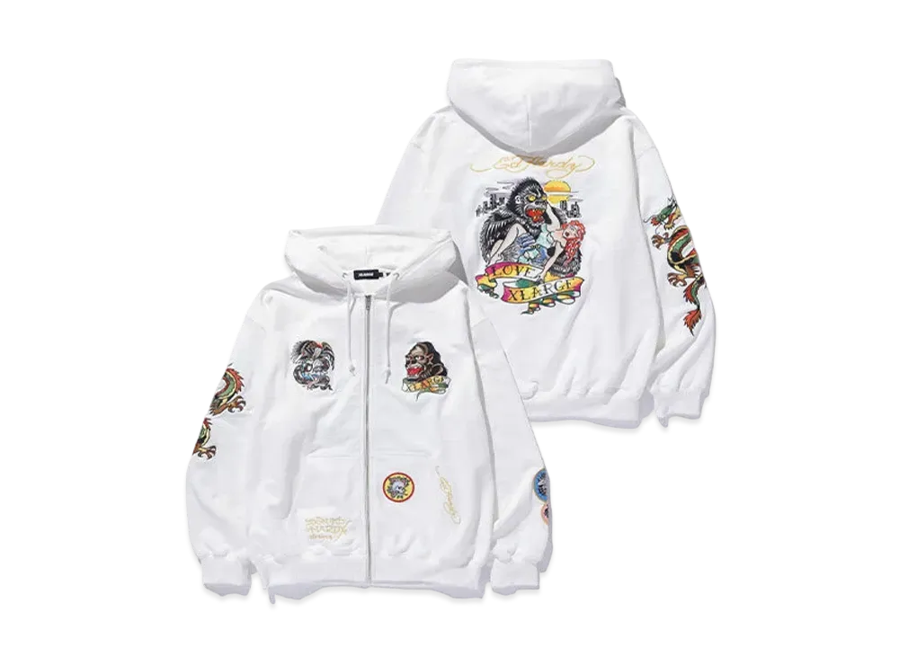 XLARGE x Ed Hardy Zip Hooded Sweatshirt "Off White"