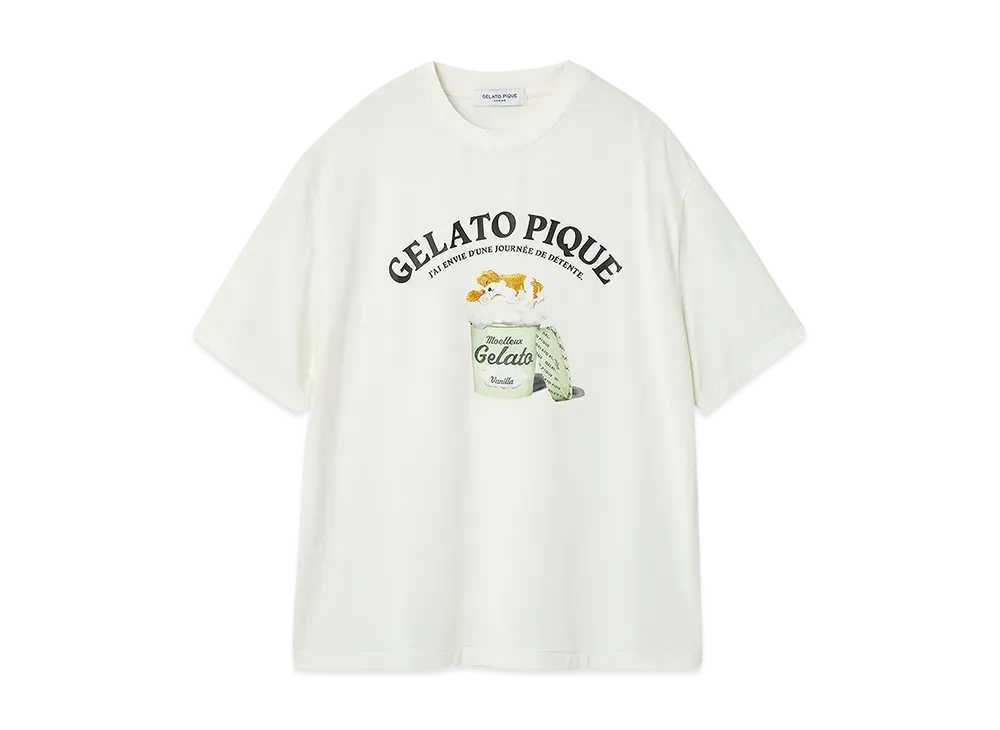 GELATO PIQUE Homme Cool To The Touch Rayon Sleeping Dog One-Point T-Shirt "Off White"