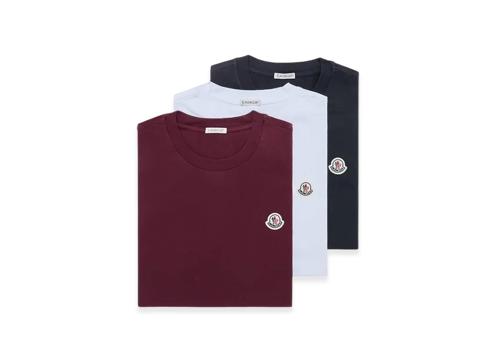 MONCLER Logo Patch Cotton T-Shirt (Pack of Three) "White Navy Blue"