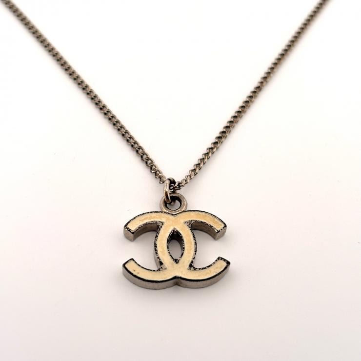 シャネル CHANEL ネックレス ココマーク 07V メタル シルバー オフホワイト CC リバーシブル【鑑定済み】正規品
