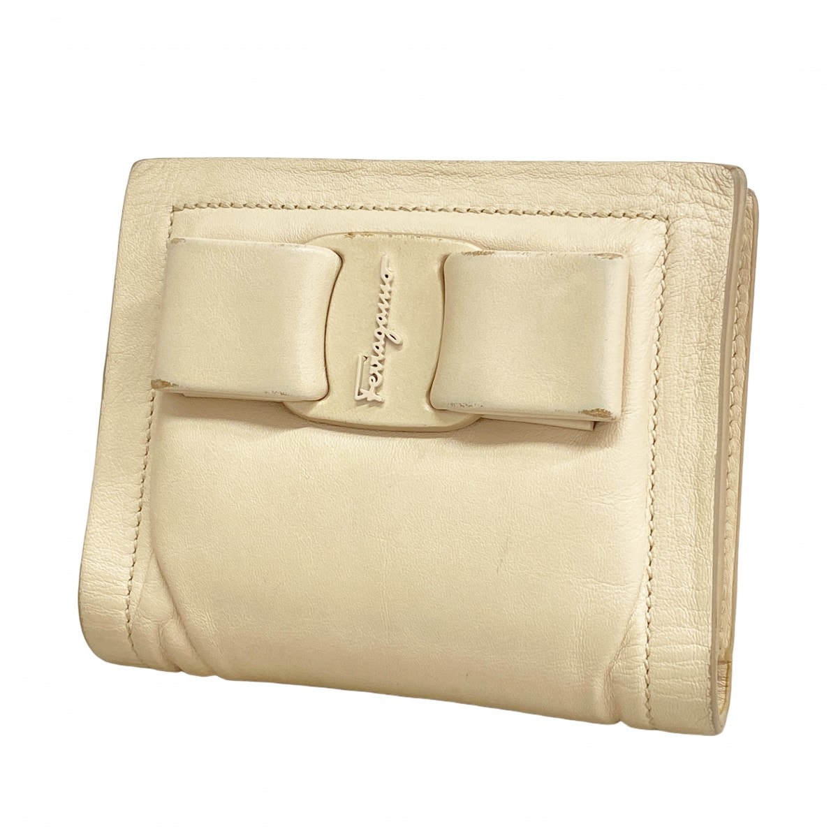 ★SALE【6cc2844】サルヴァトーレフェラガモ 財布 ヴァラ レザー オフホワイト シルバー金具【中古】レディース
