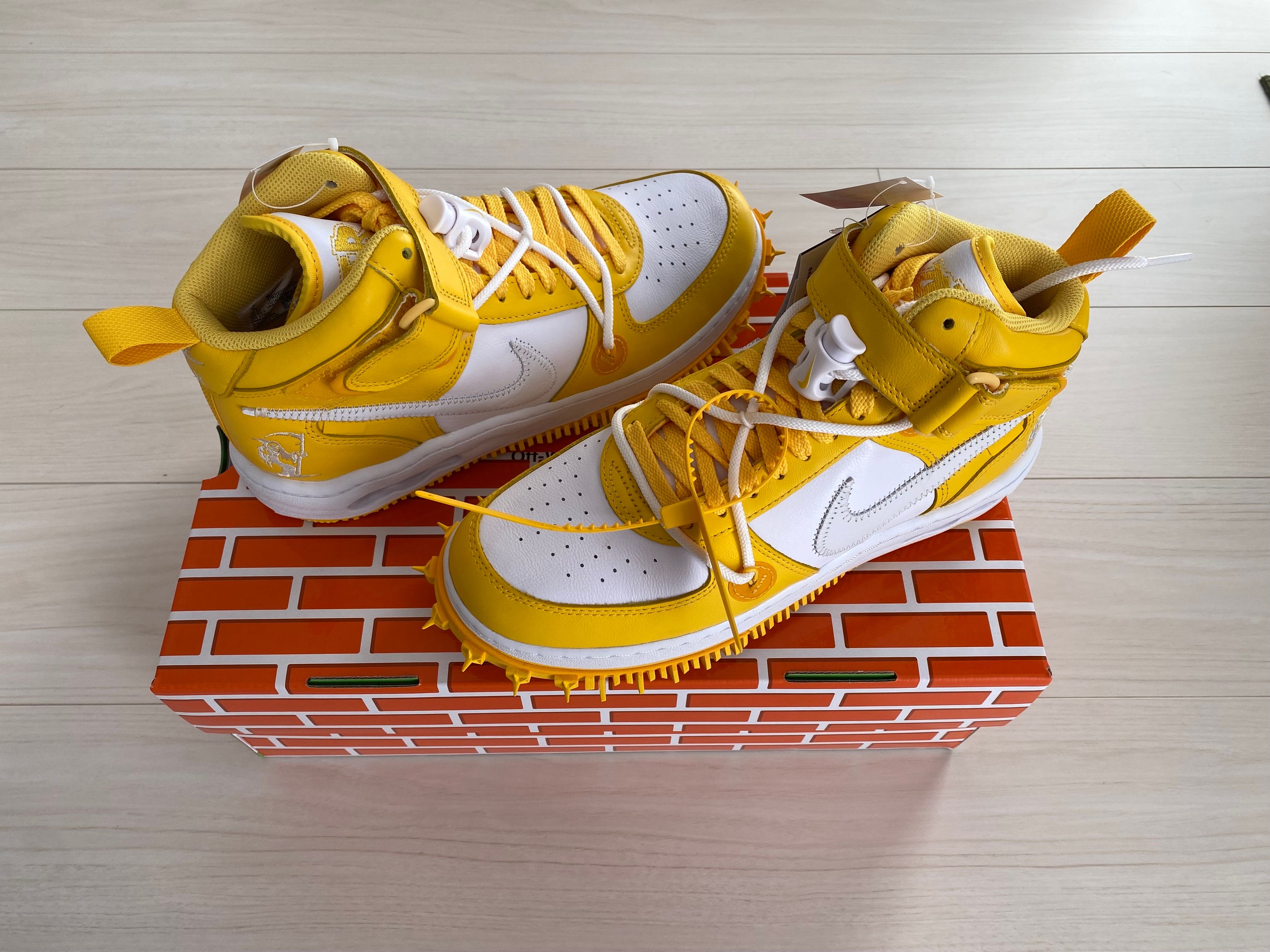Off-White × Nike Air Force 1 Mid SP LTHR "White and Varsity Maize"