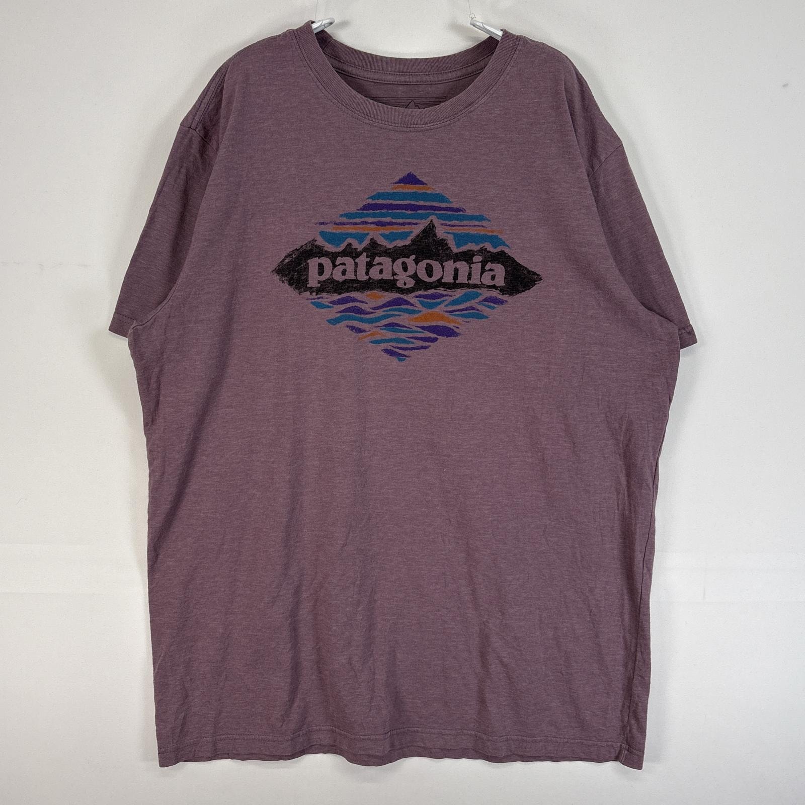 古着 パタゴニア patagonia 半袖Tシャツ プリント アウトドア クルーネック L パープル メンズ