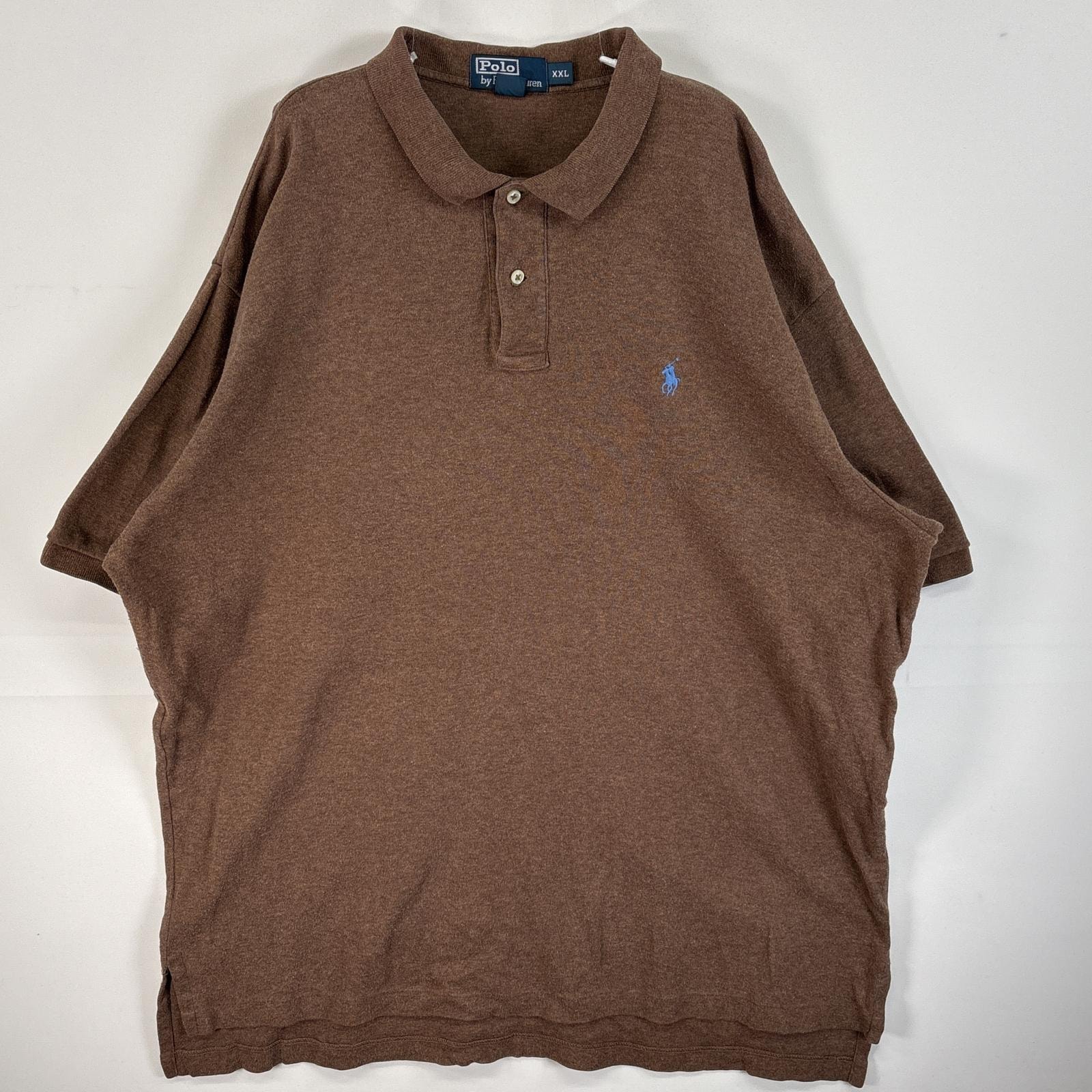 古着 90's/90年代 ポロバイラルフローレン Polo by Ralph Lauren 半袖 ポロシャツ ロゴ 刺繍 大きいサイズ 2ボタン 14041 ブラウン 無地 メンズ