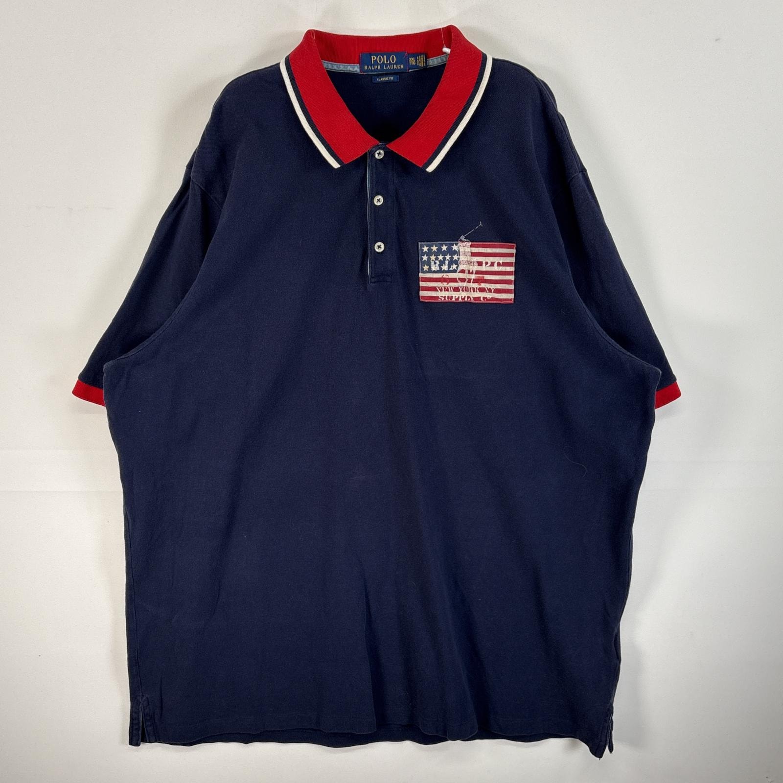 古着 ポロ・ラルフローレン POLO RALPH LAUREN 鹿の子 半袖 ポロシャツ 袖・襟切替 ロゴ ワッペン 大きいサイズ 14041 ネイビー 無地 メンズ