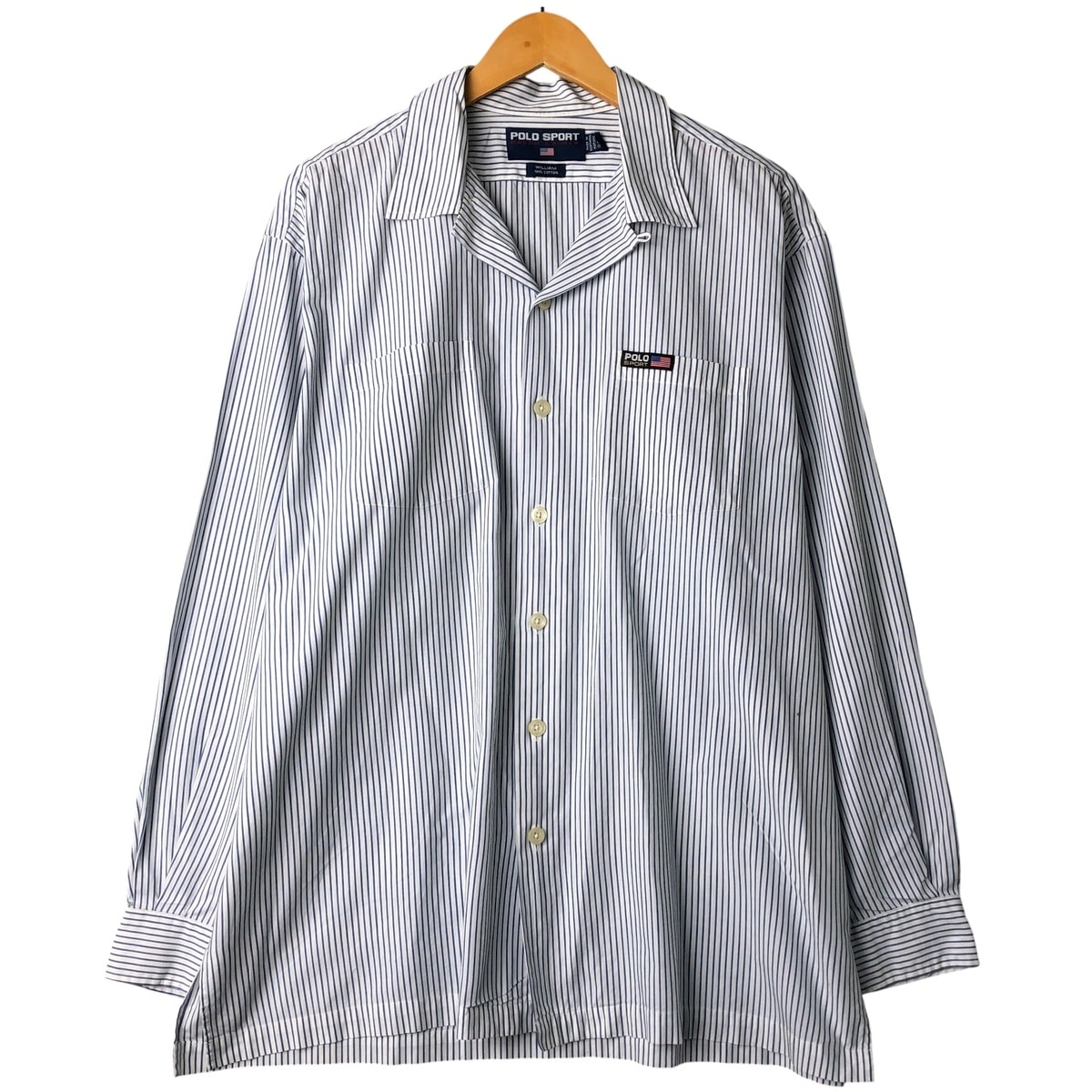 古着 90年代 ラルフローレン Ralph Lauren POLO SPORT ポロスポーツ オープンカラー 長袖 コットンストライプシャツ ボックスシャツ メンズL相当 ヴィンテージ/eaa597716