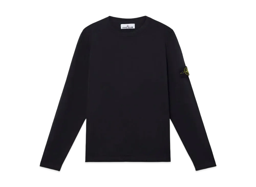 Stone Island Light Pure RWS Wool Crew Neck Sweater With Ribbed Detail "Black"