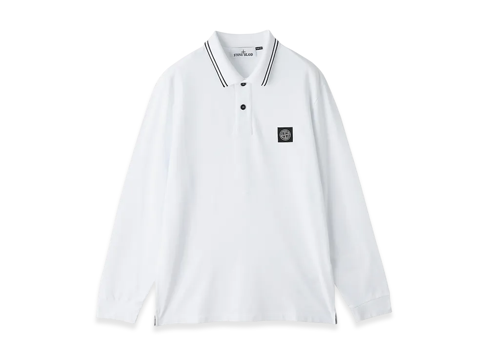 Stone Island L/S Polo Shirt 22002SL Organic Cotton Elastane Pique "White"