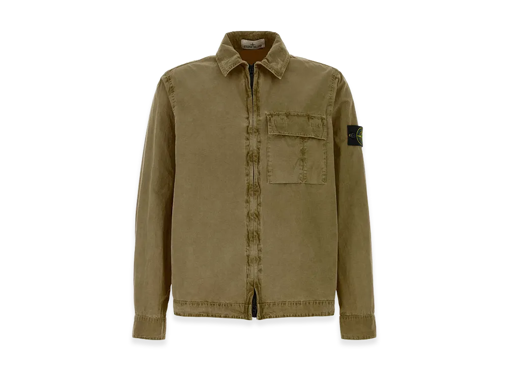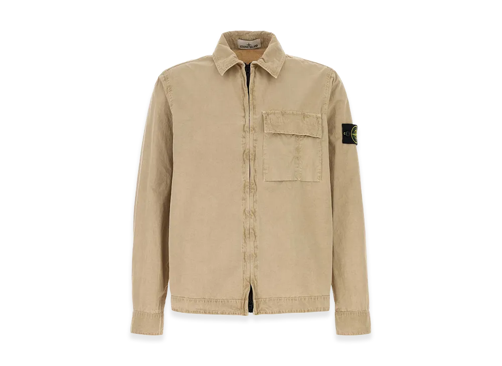 Stone Island Comfort Fit Cotton Overshirt With Zip "Beige"