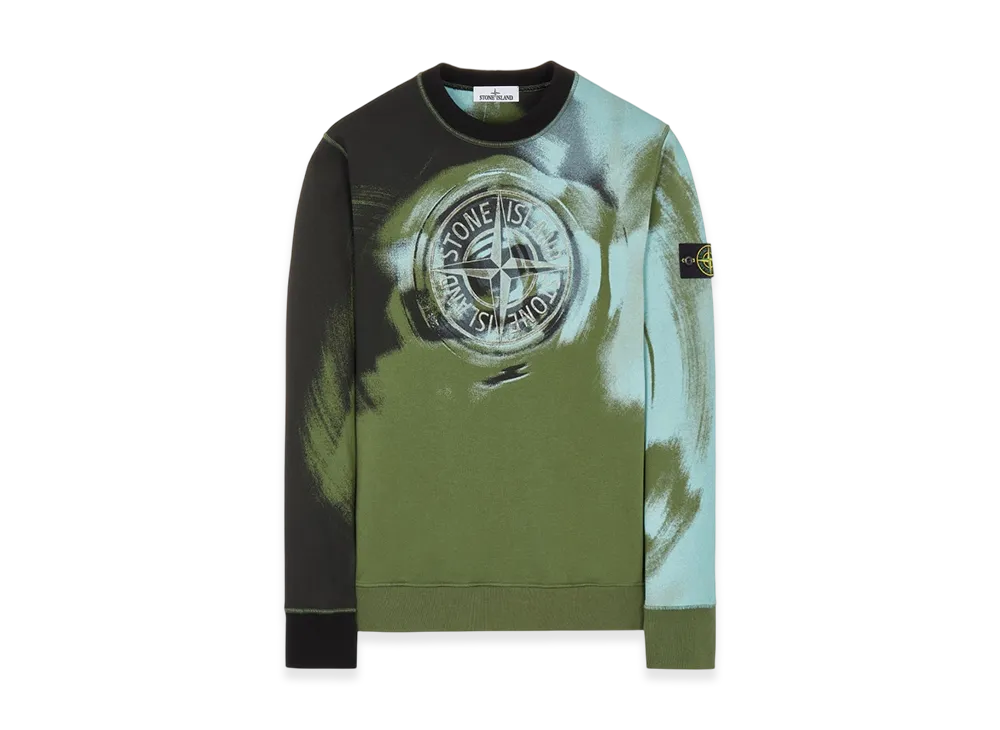 Stone Island 63045 Brushed Cotton Fleece Garment Dyed Motion Saturation Crewneck Sweatshirt - 22FW "Olive Green"
