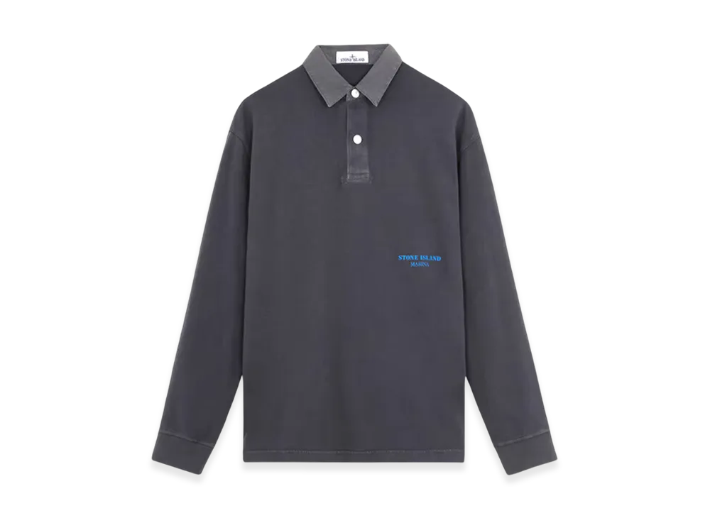 Stone Island 209X4 Marina 24/2 Cotton Jersey Old Effect Oversized Fit Long Sleeve Polo Shirt - 24FW "Ink Blue"