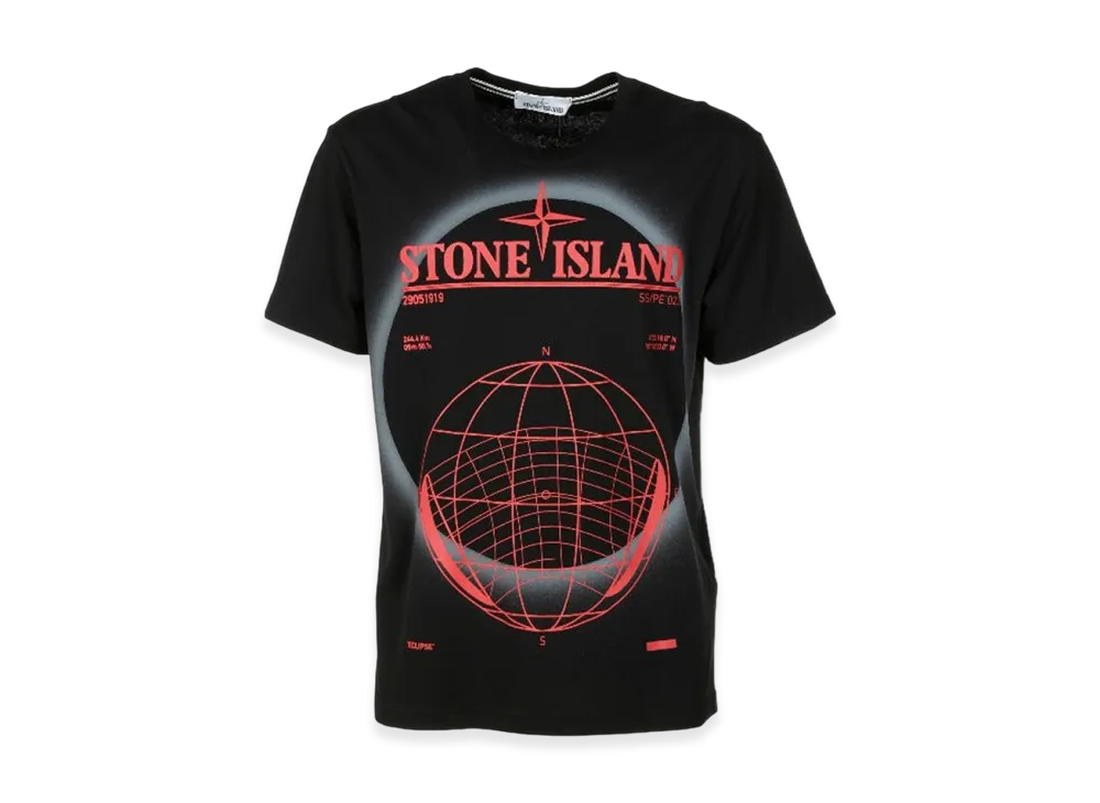 Stone Island 2NS96 30/1 Cotton Jersey Solar Eclipse Two Print Garment Dyed T-Shirt - 22SS "Black"