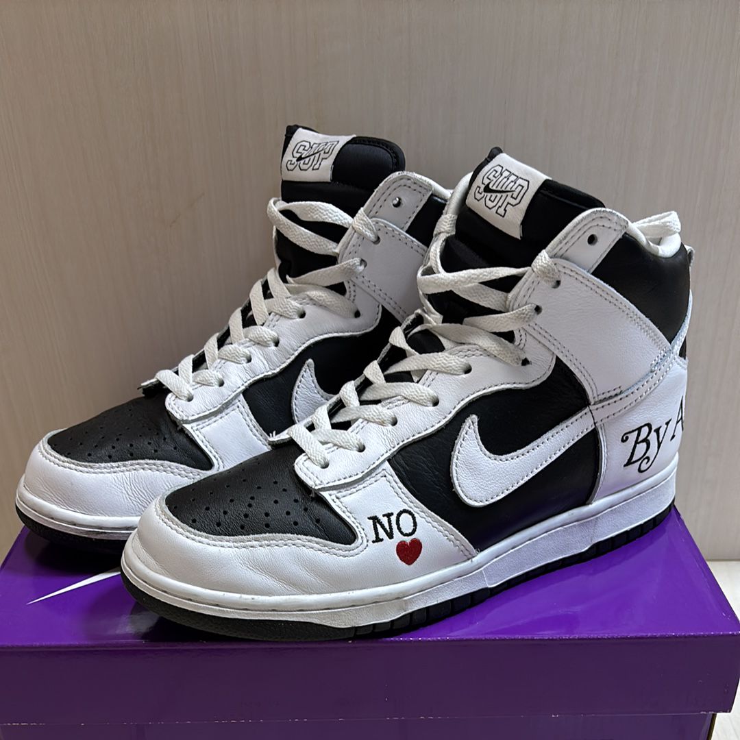 Supreme × Nike SB Dunk High By Any Means "White Black"