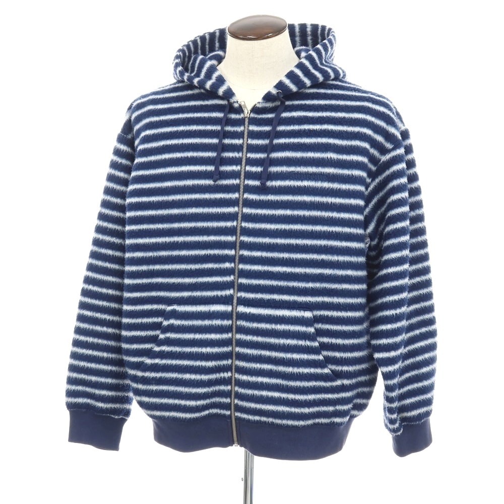 【中古】シュプリーム Supreme 2023年秋冬 Brushed Zip Up Hooded Sweatshirt ボーダー ジップアップ パーカー ネイビーxホワイト【サイズL】【メンズ】