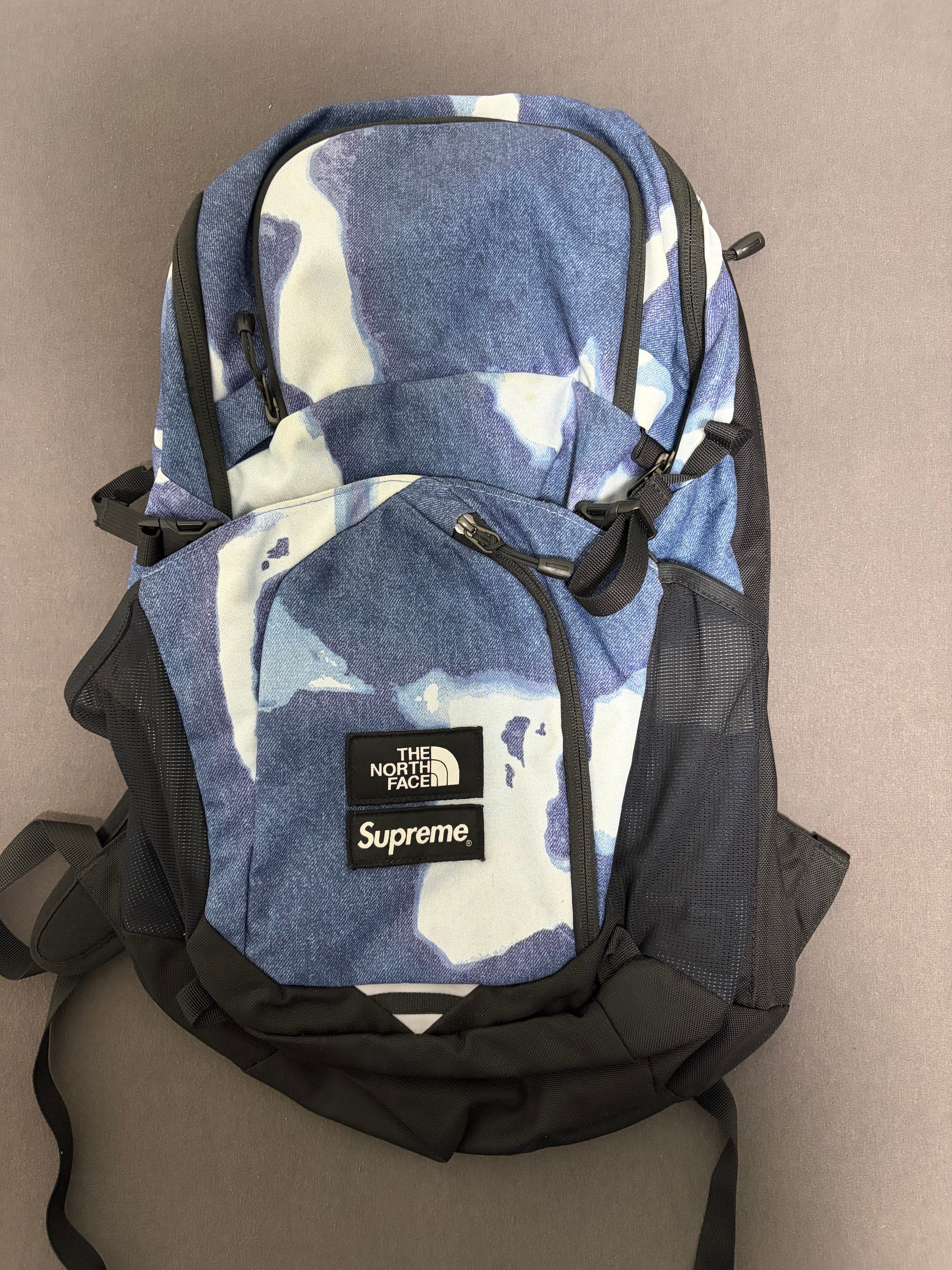 Supreme x The North Face Bleached Denim Print Pocono Backpack "Indigo"