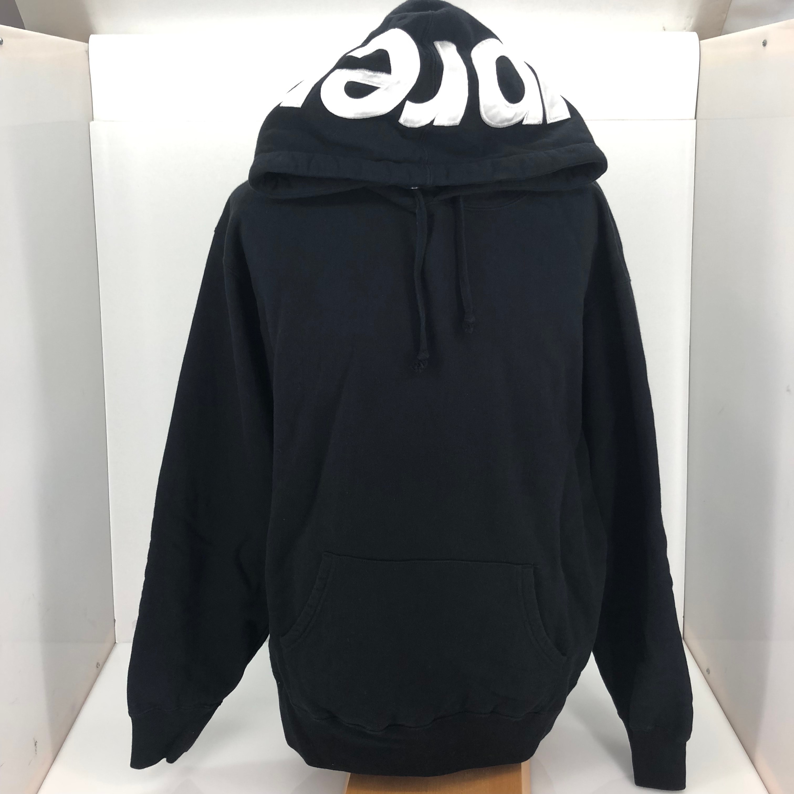 Supreme Satin Applique Hooded Sweatshirt "Black"