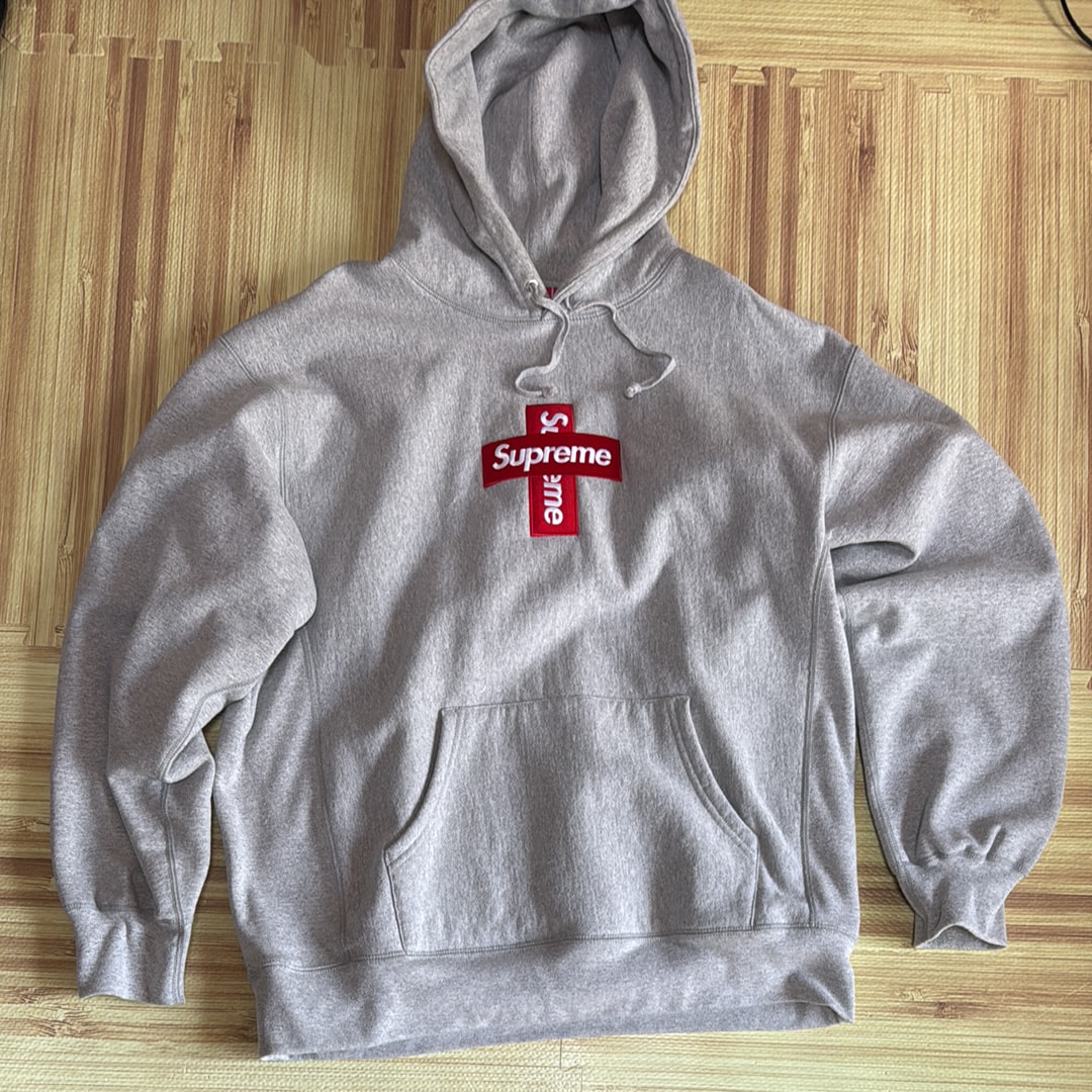 Supreme Cross Box Logo Hooded Sweatshirt "Grey"