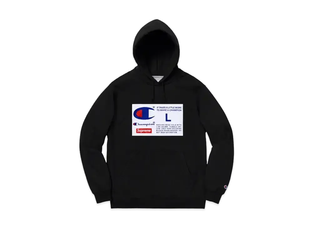 Supreme Champion Label Hooded Sweatshirt "Black"