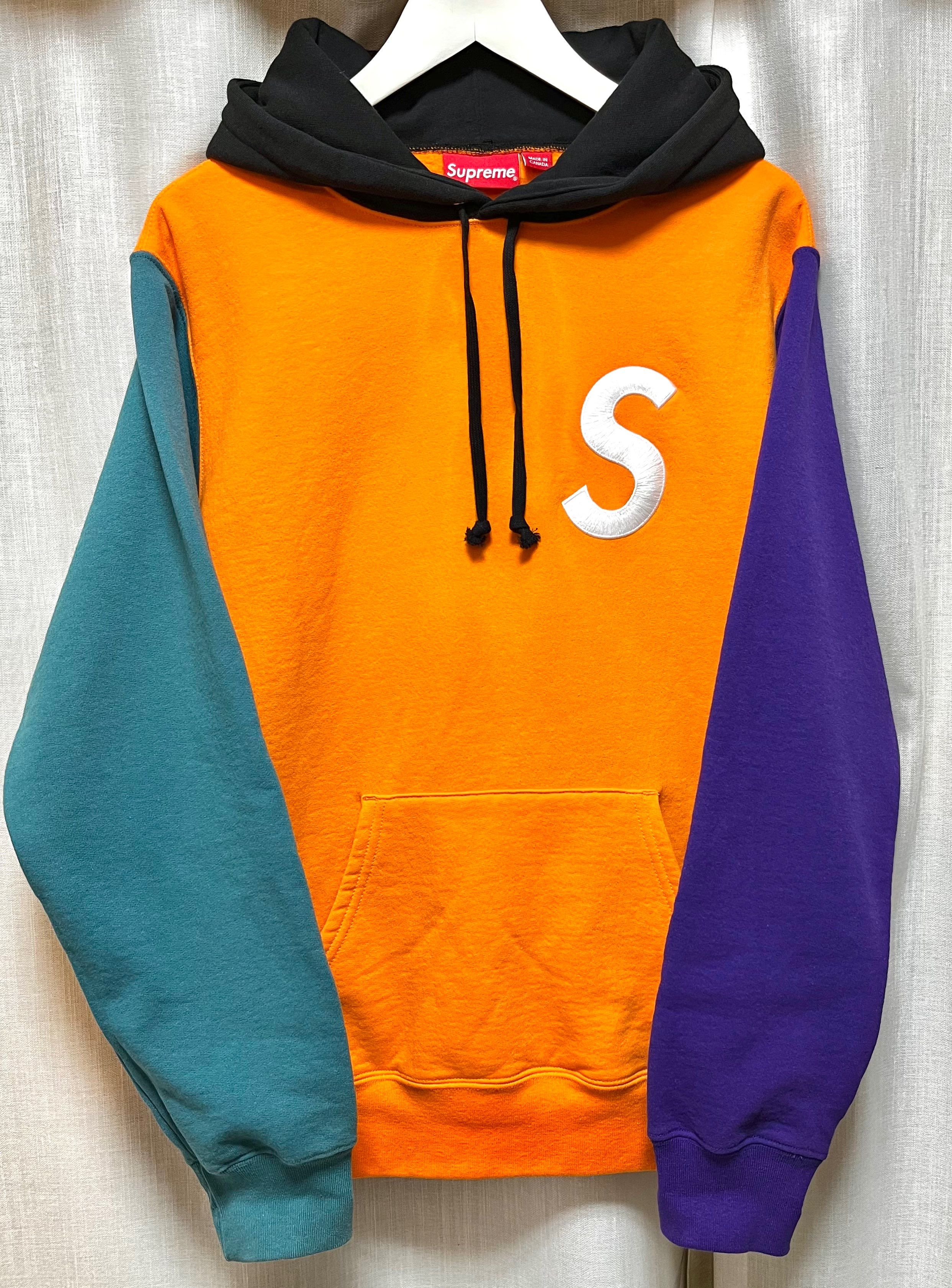 Supreme S Logo Colorblocked Hooded Sweatshirt "Orange"