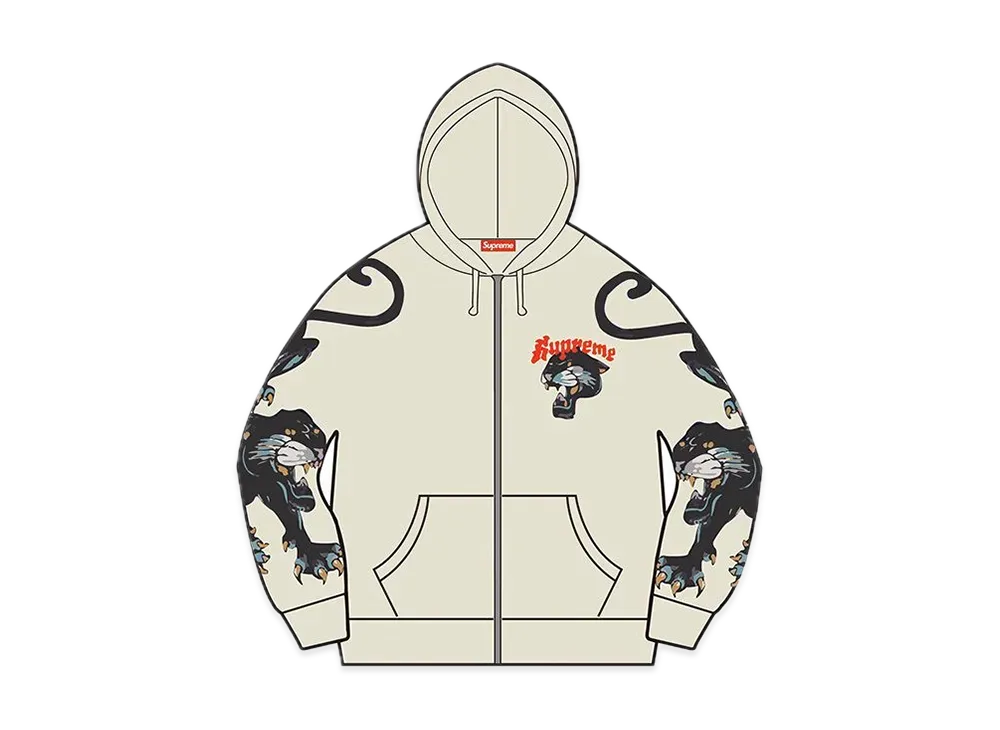 Supreme Panther Zip Up Hooded Sweatshirt "Natural"