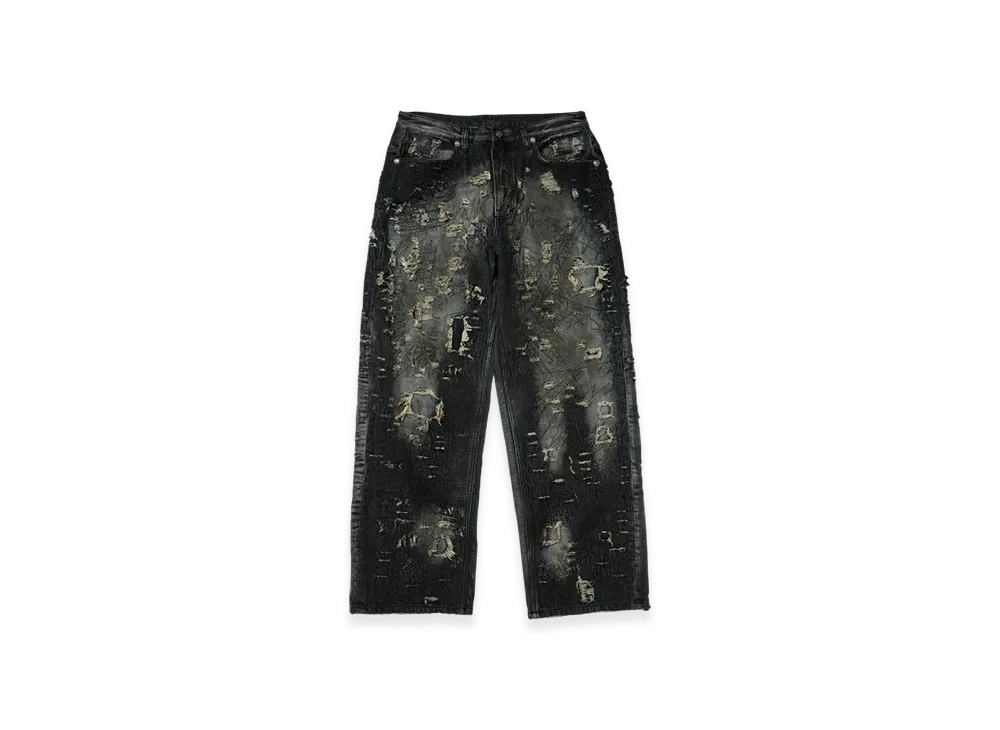 THUG CLUB Hard-Washed Damaged Denim Pants "Black"
