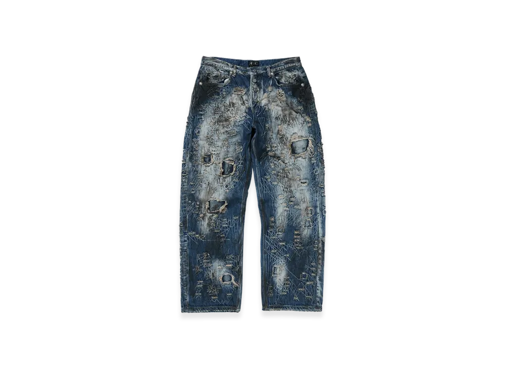 THUG CLUB Hard-Washed Damaged Denim Pants "Blue"