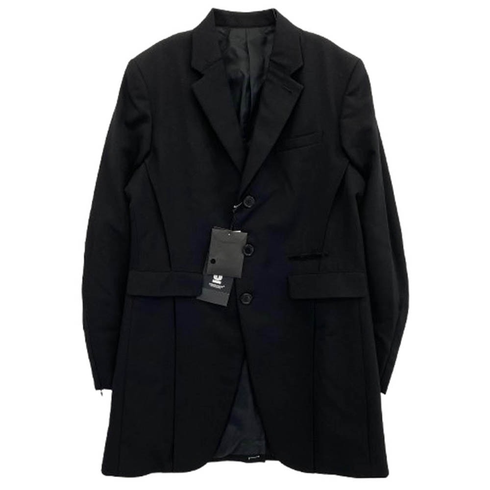 UNDERCOVER アンダーカバー ジャケット 23AW 6839 ハルキングウールツイル 袖ジップ ベストドッキング ロング ジャケット ブラック系 3【新古品】【未使用】【中古】