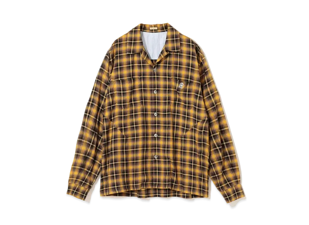 UNDERCOVER Rayon Blend Cotton Open Collar Shirt "Yellow CK"