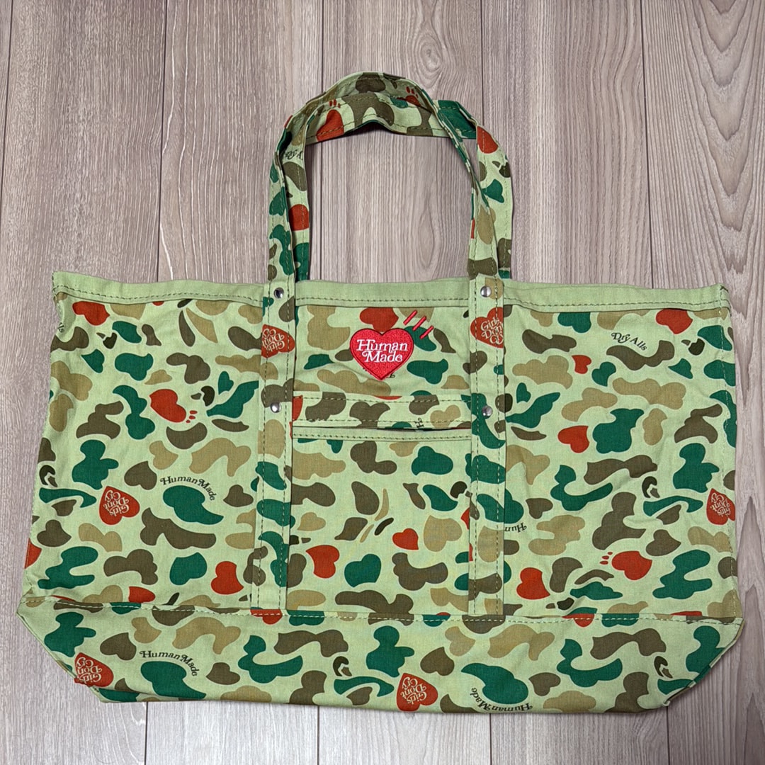 HUMAN MADE x Girls Don'T Cry Heart Camo Tote Bag Large "Green" / VERDY