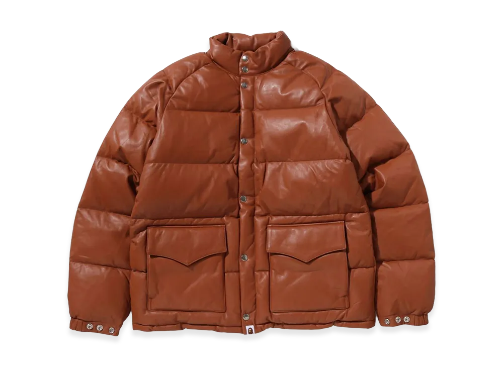 A BATHING APE Leather Classic Down Jacket "Brown"