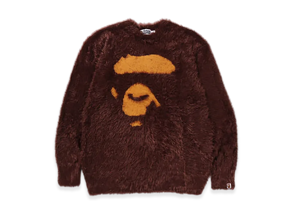 A BATHING APE Ape Face Shaggy Sweater "Brown"