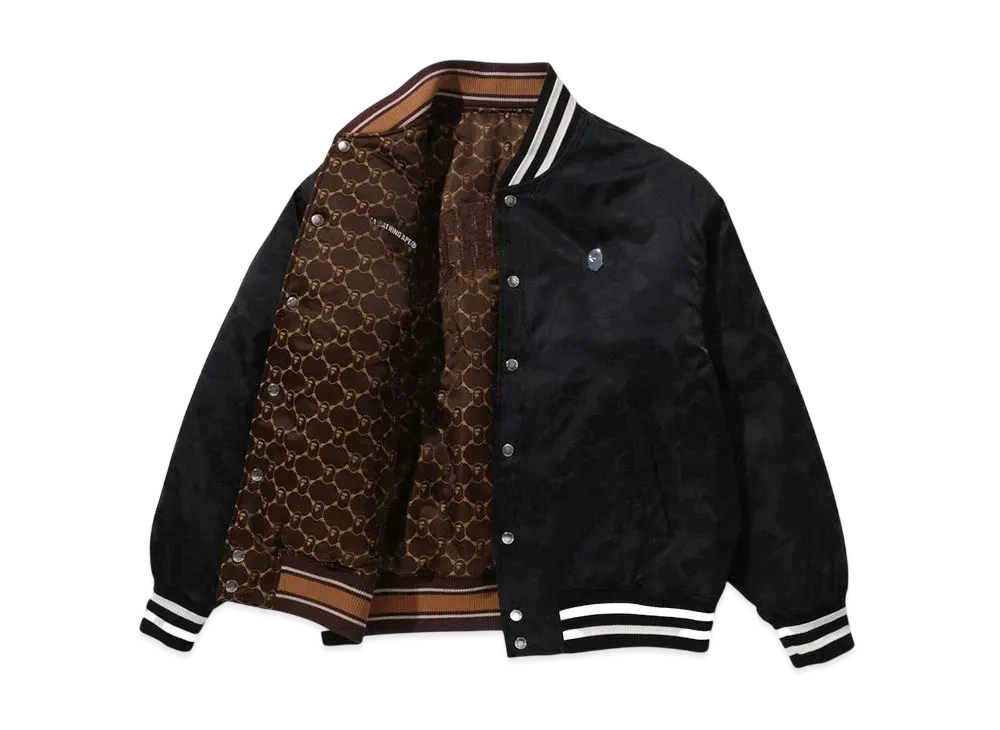 A BATHING APE Solid Camo Jacquard Nylon Reversible Bomber Padded Jacket "Black"