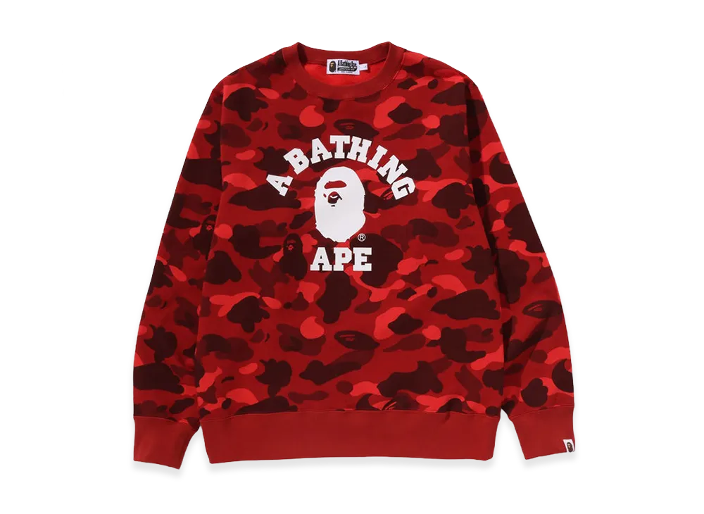 A BATHING APE Color Camo College Crewneck Sweatshirt "Red"