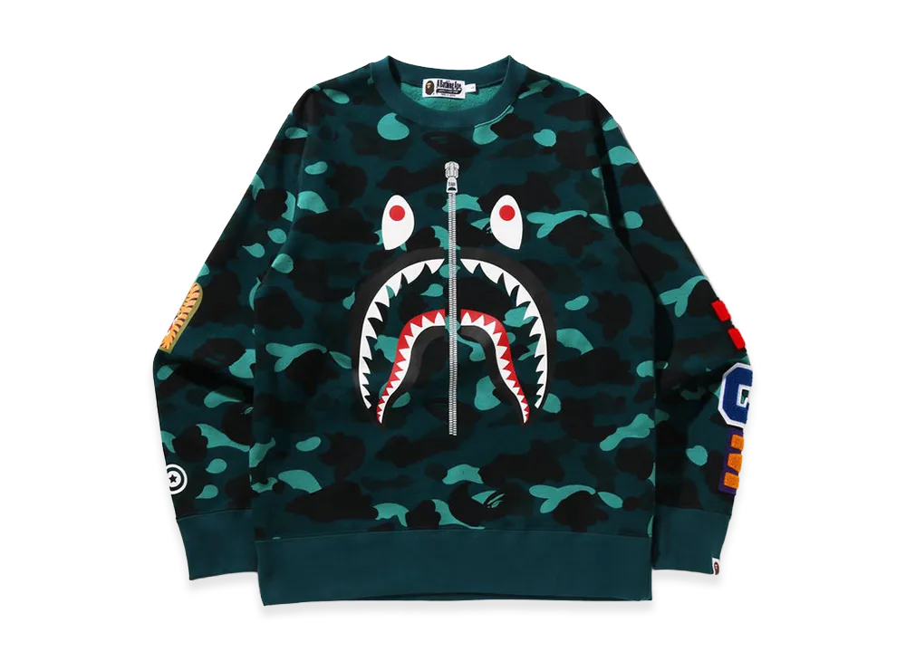 A BATHING APE Color Camo Shark Crewneck Sweatshirt "Green"
