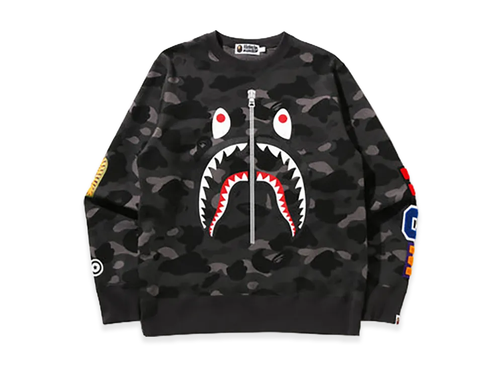 A BATHING APE Color Camo Shark Crewneck Sweatshirt "Black"