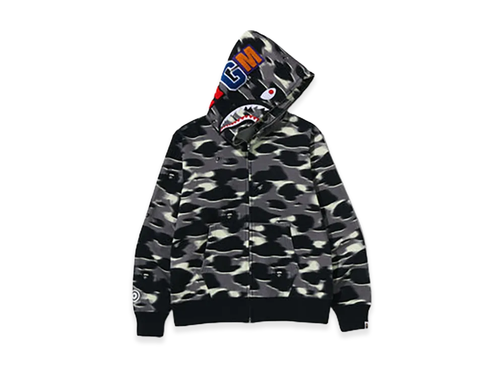 A BATHING APE Screen Camo Shark Full Zip Hoodie "Black"