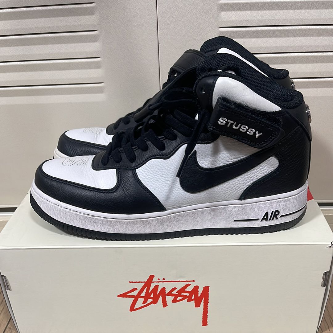 Stussy × Nike Air Force 1 Mid "Black and Light Bone"