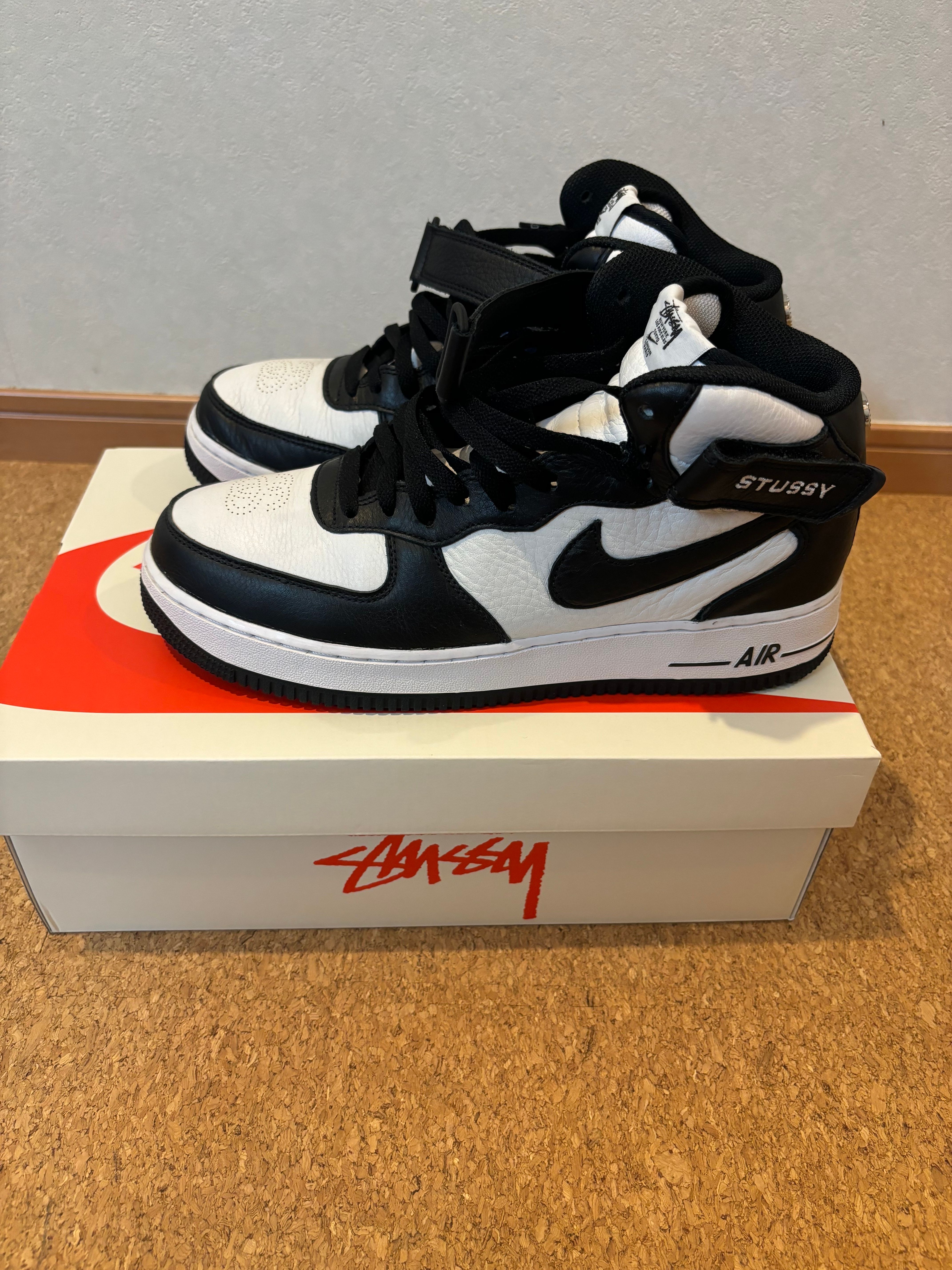 Stussy × Nike Air Force 1 Mid "Black and Light Bone"