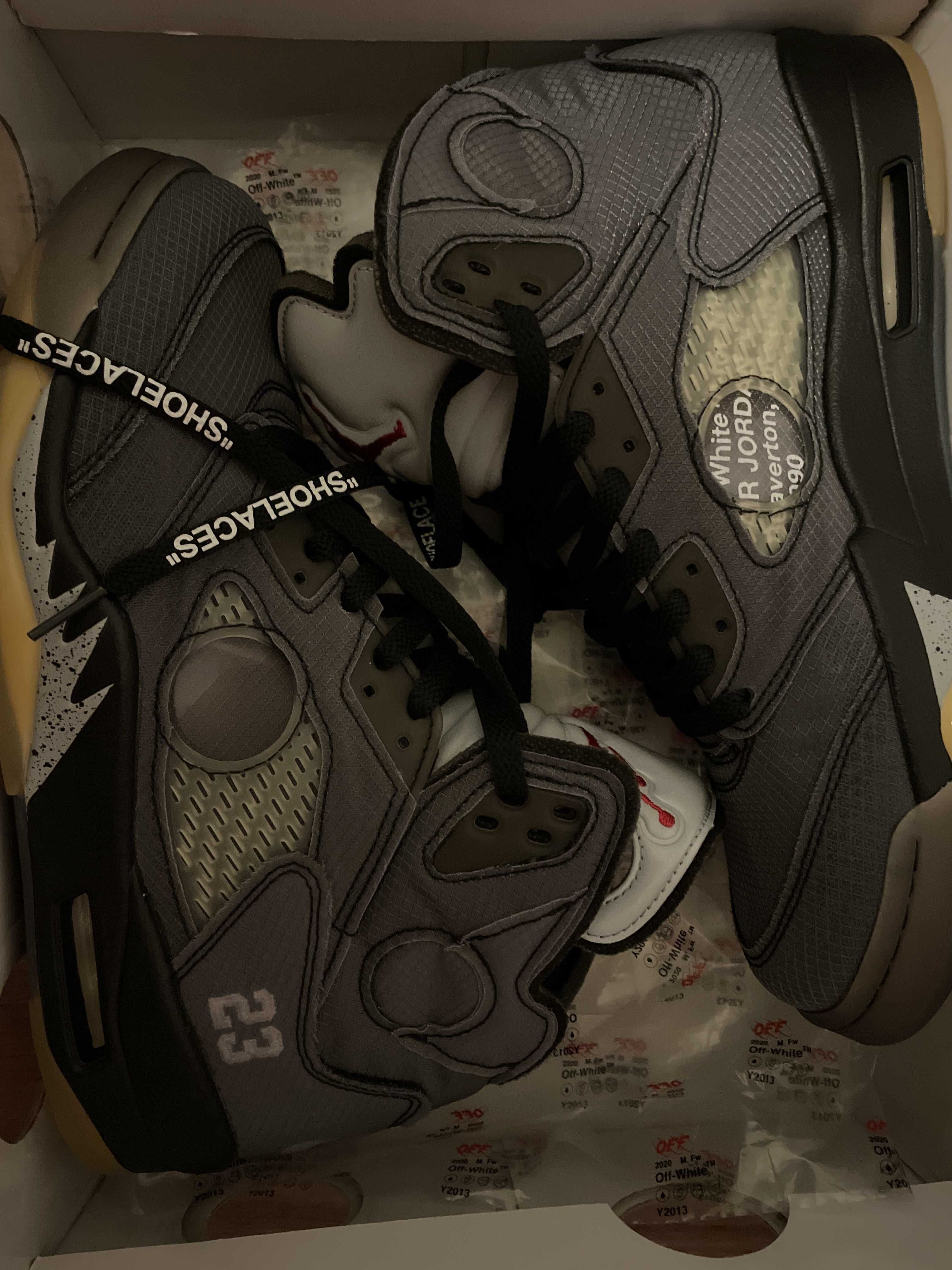 Off-White × Nike Air Jordan 5 "Black/Muslin/Fire Red"