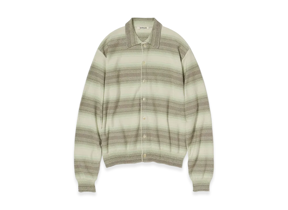 AURALEE Cotton Silk Gradient Stripe Knit Shirt Cardigan "Lime Gray Stripe"