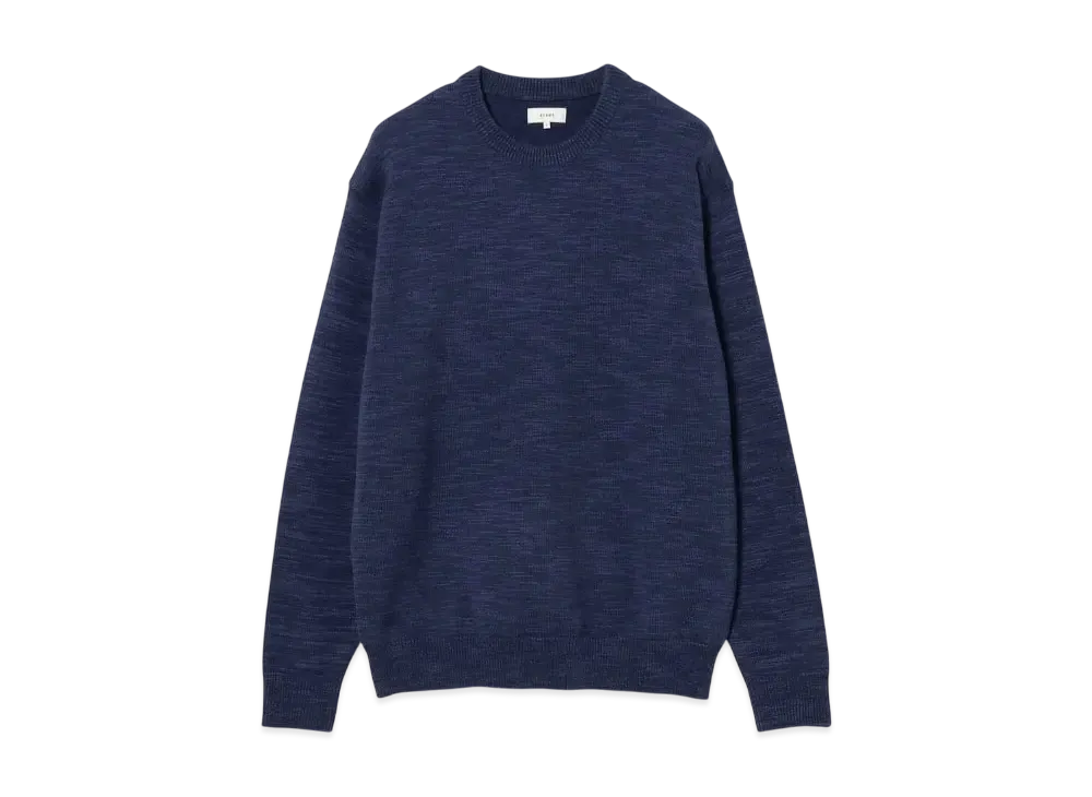 BEAMS 9 Gauge Color Slab Crew Neck Knit "Navy"