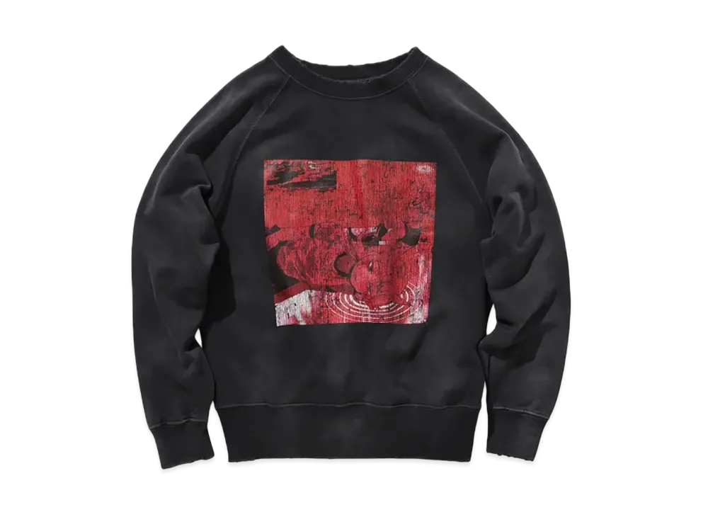 BEAMS FUTURE ARCHIVE Damege Flocky Print Crewneck Sweat "Red"