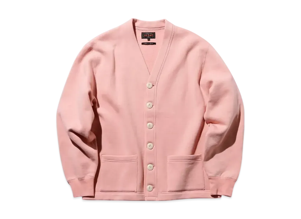 BEAMS Sweat V Cardigan Raised Back "Pink"