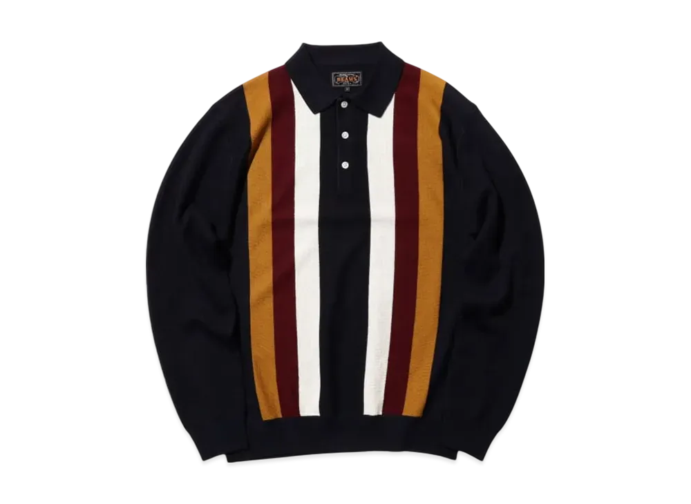 BEAMS Knit Polo Stripe "Navy"